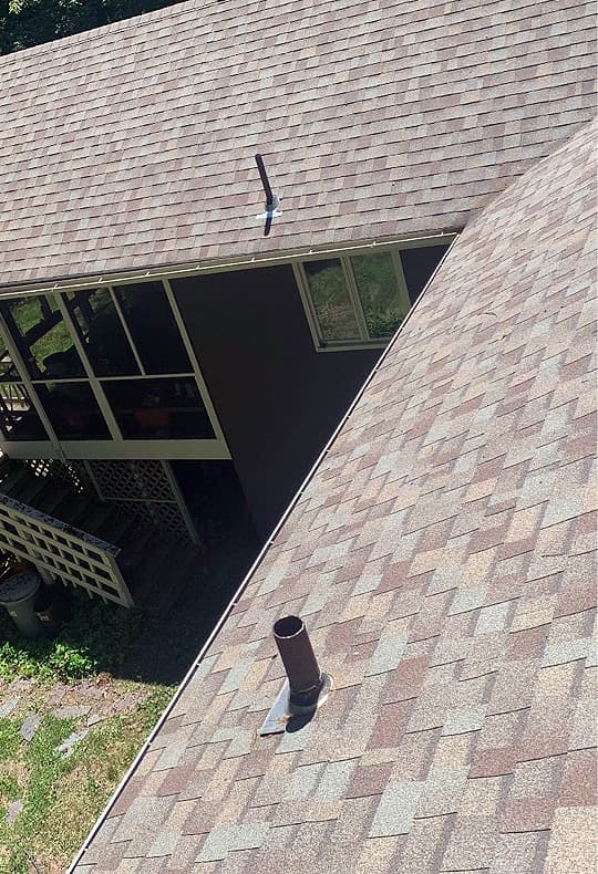Moss, Mold, Mildew, and Lichen builds up on the shady moist side of many houses. It can happen to any house. All you need is bacteria traveling through the air, and a warm muggy summer day to have the bacteria stick. Over several years the bacteria multiplies, until you get big pieces of debris that grow on your roof! The moss or other debris hold water and cause your shingles to be exposed to moisture longer than if there wasn’t debris. Over many years of prolonged moisture exposure, shingles start to wear quicker and will require replacement faster.